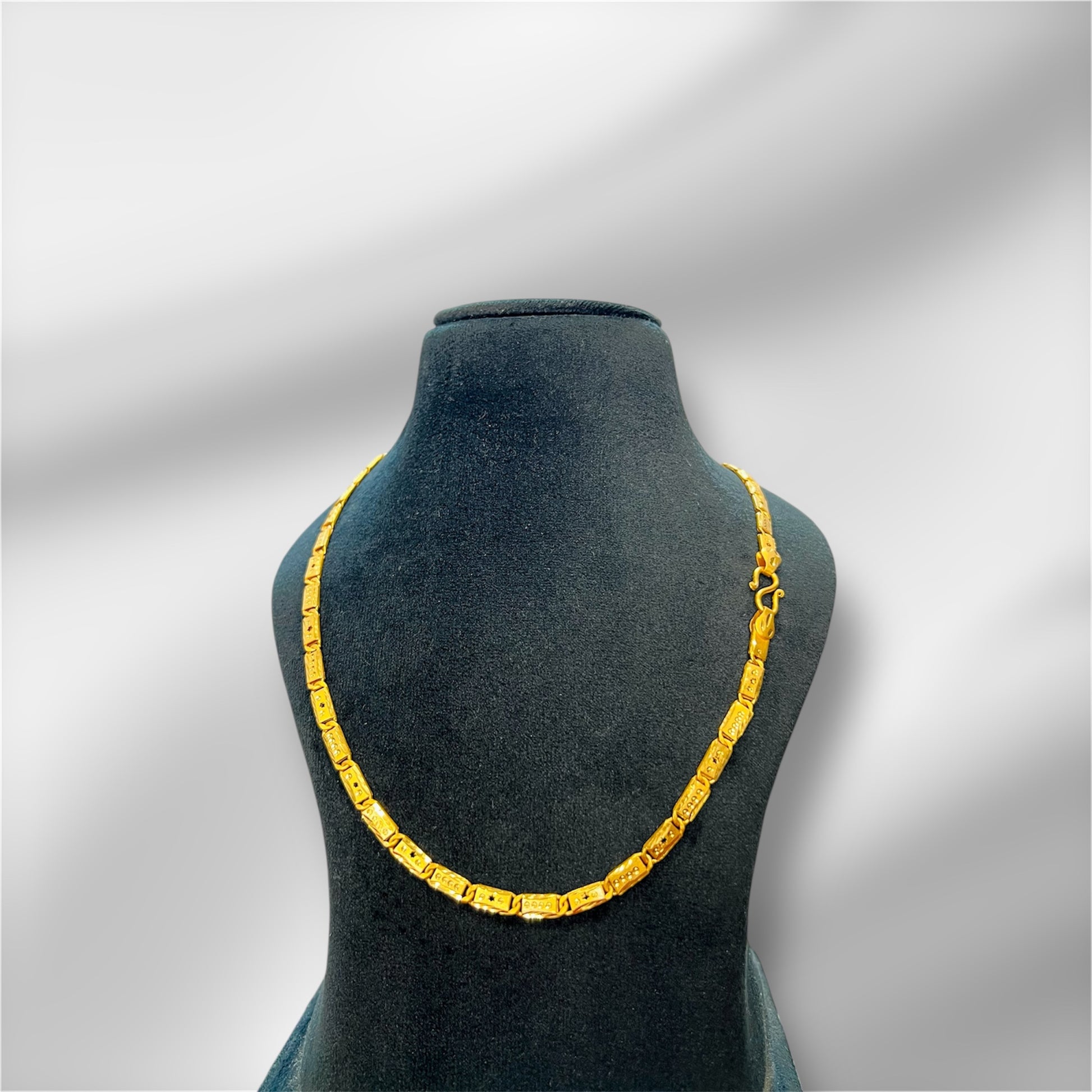 This 1 gram gold-plated Navabi chain offers a refined blend of elegance and durability. Expertly crafted, it provides the classic appeal of gold with a lightweight design, making it ideal for everyday wear or special occasions. Its subtle shine enhances any outfit, while the quality plating ensures lasting beauty without compromising affordability. Perfect for those seeking a sophisticated accessory with expert craftsmanship.